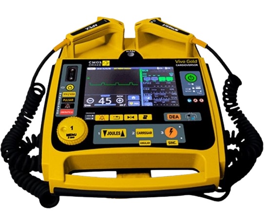 Descrição do Produto O Cardioversor/Desfibrilador VIVO GOLD, fabricado pela CMOS Drake, é um equipamento desenvolvido para aplicações profissionais em ambientes