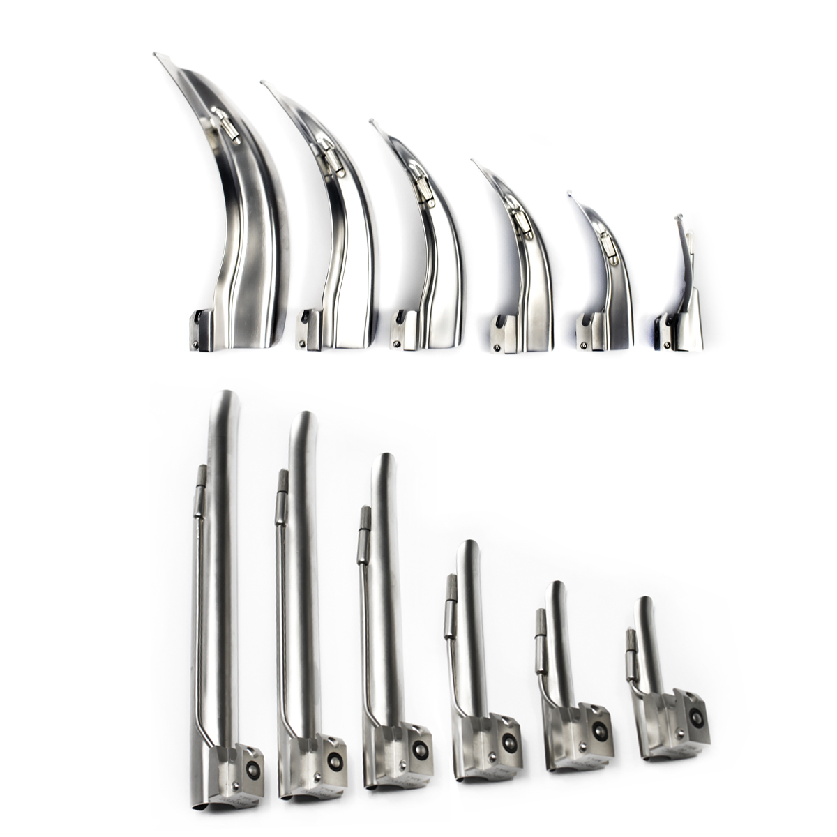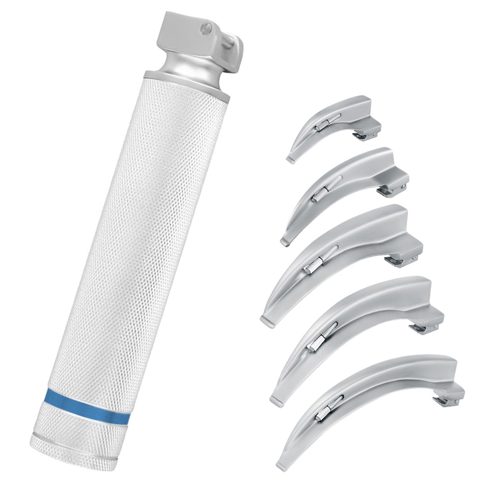 Kit Laringoscópio Completo Com Laminas Curvas E Retas E Cabo Infantil E Adulto