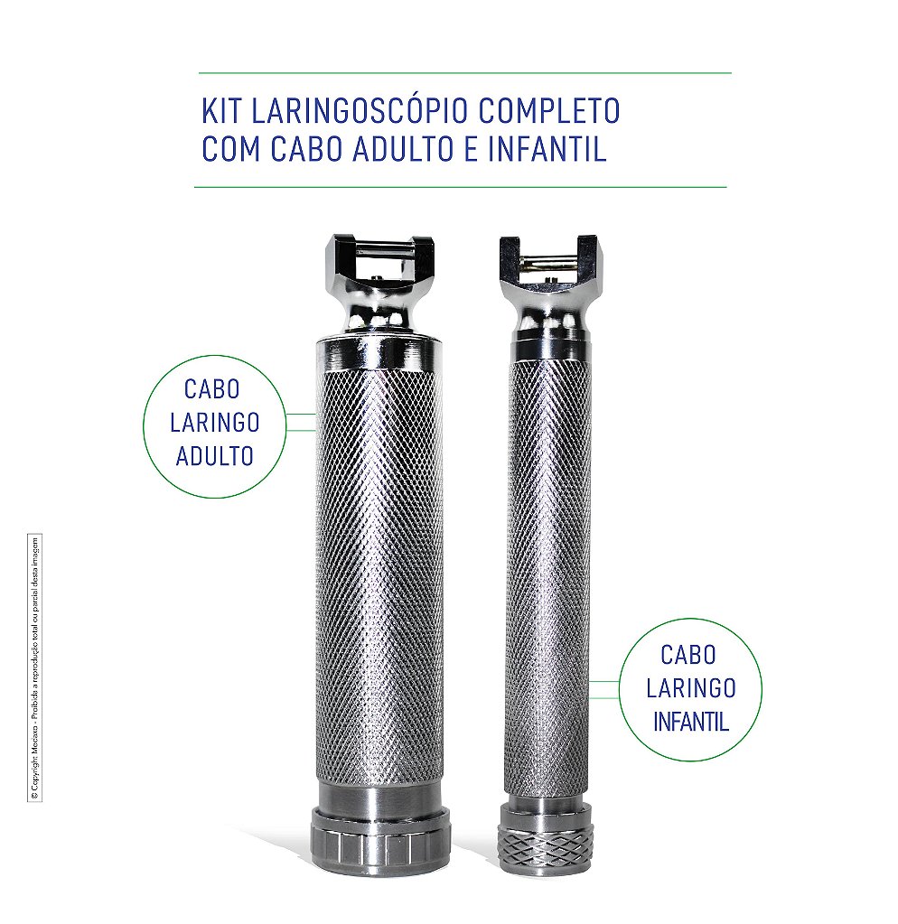 Kit Laringoscópio Completo com 12 Lâminas Curvas e Retas Descrição:Kit completo de laringoscópio com cabo adulto e infantil em aço