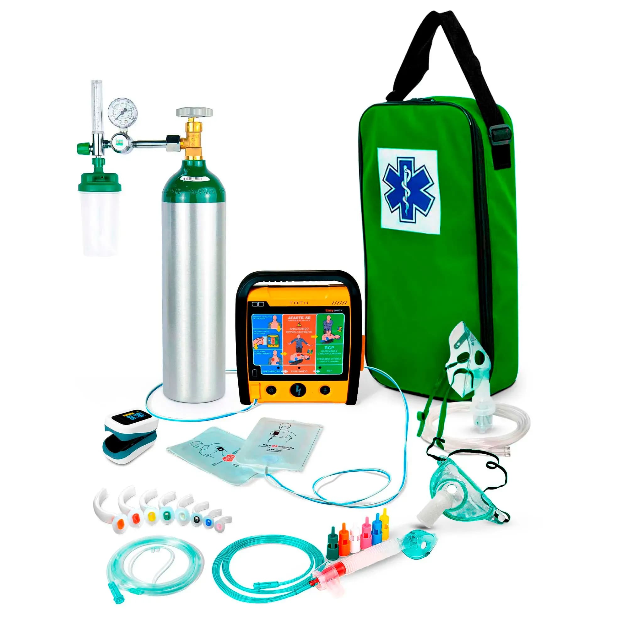 Desfibrilador Externo Automático Easyshock 5800 com Kit Portátil de Oxigênio – Toth Lifecare Descrição corrigida:O conjunto inclui o Desfibrilador Externo