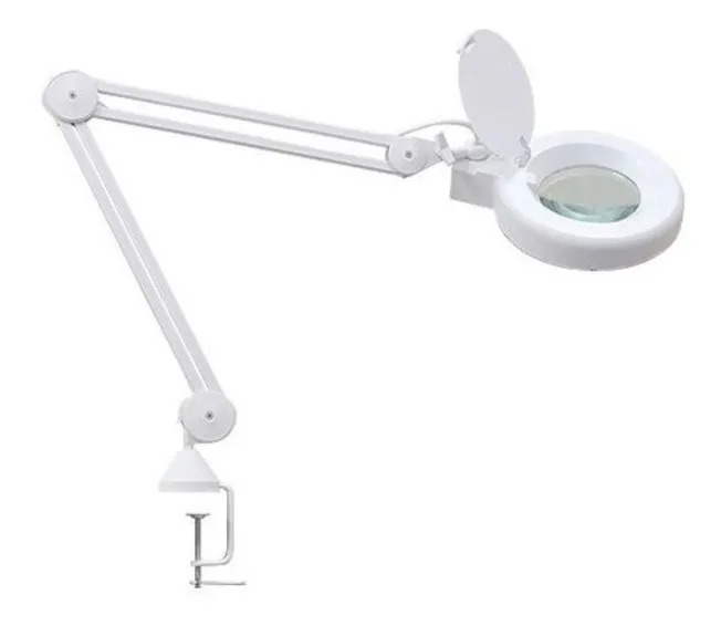 Lupa Articulada de Mesa com 48 LEDs Descrição:Lupa articulada de mesa com iluminação LED integrada, projetada para proporcionar ampliação visual