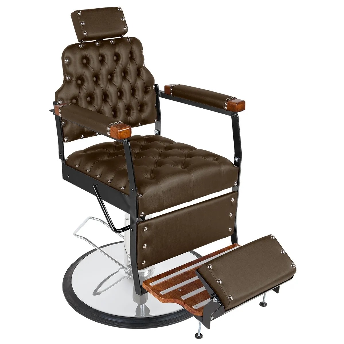 Cadeira de Barbeiro Retrô Reclinável com Assento Largo e Apoio de Cabeça