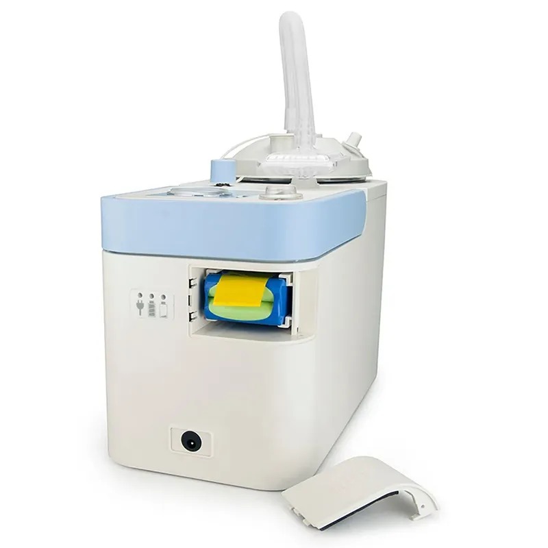 Aspirador de secreção portátil DV-350 MD com bateria recarregável e operação bivolt (110V/240V). Desenvolvido para aspiração eficiente de vias aéreas, oferece vácuo ajustável (0-620 mmHg) e fluxo de 20L/min. Frasco coletor de 800ml com proteção antitransbordamento, filtro descartável e vacuômetro analógico. Leve (3,5kg), silencioso e com bomba isenta de óleo. Ideal para hospitais, UTIs, ambulâncias e uso domiciliar.